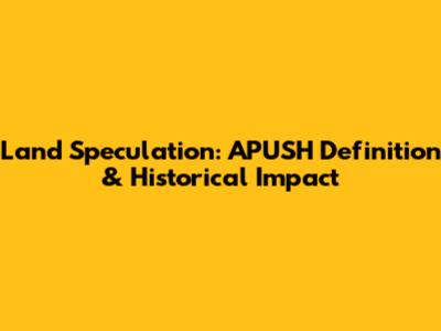 Land Speculation: APUSH Definition & Historical Impact