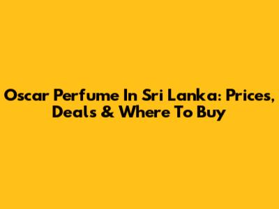 Oscar Perfume In Sri Lanka: Prices, Deals & Where To Buy
