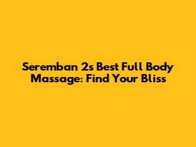 Seremban 2's Best Full Body Massage: Find Your Bliss
