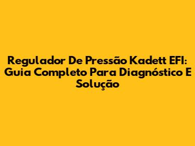 Regulador De Pressão Kadett EFI: Guia Completo Para Diagnóstico E Solução